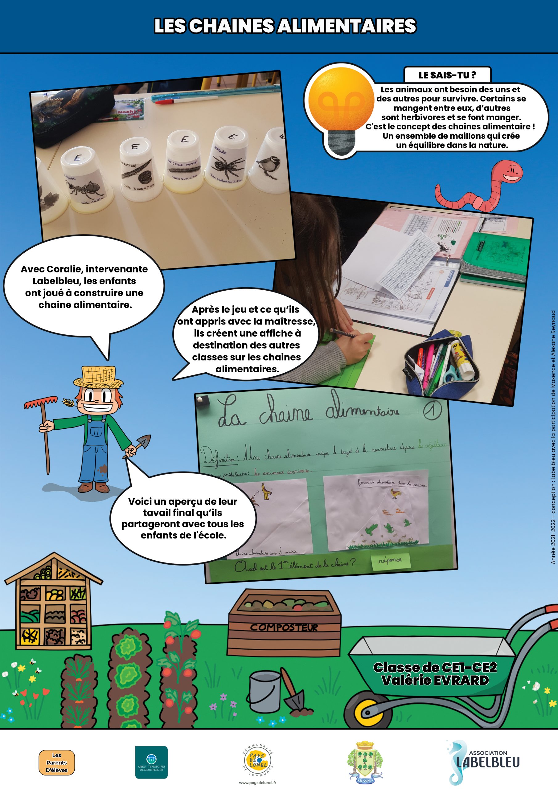 L’Association Labelbleu a demandé à mon frère de faire 16 affiches pour une exposition de ce qu’ont fait les enfants d’une école. Mon frère s’est occupé de la mise en page sur Photoshop, et moi des illustrations !