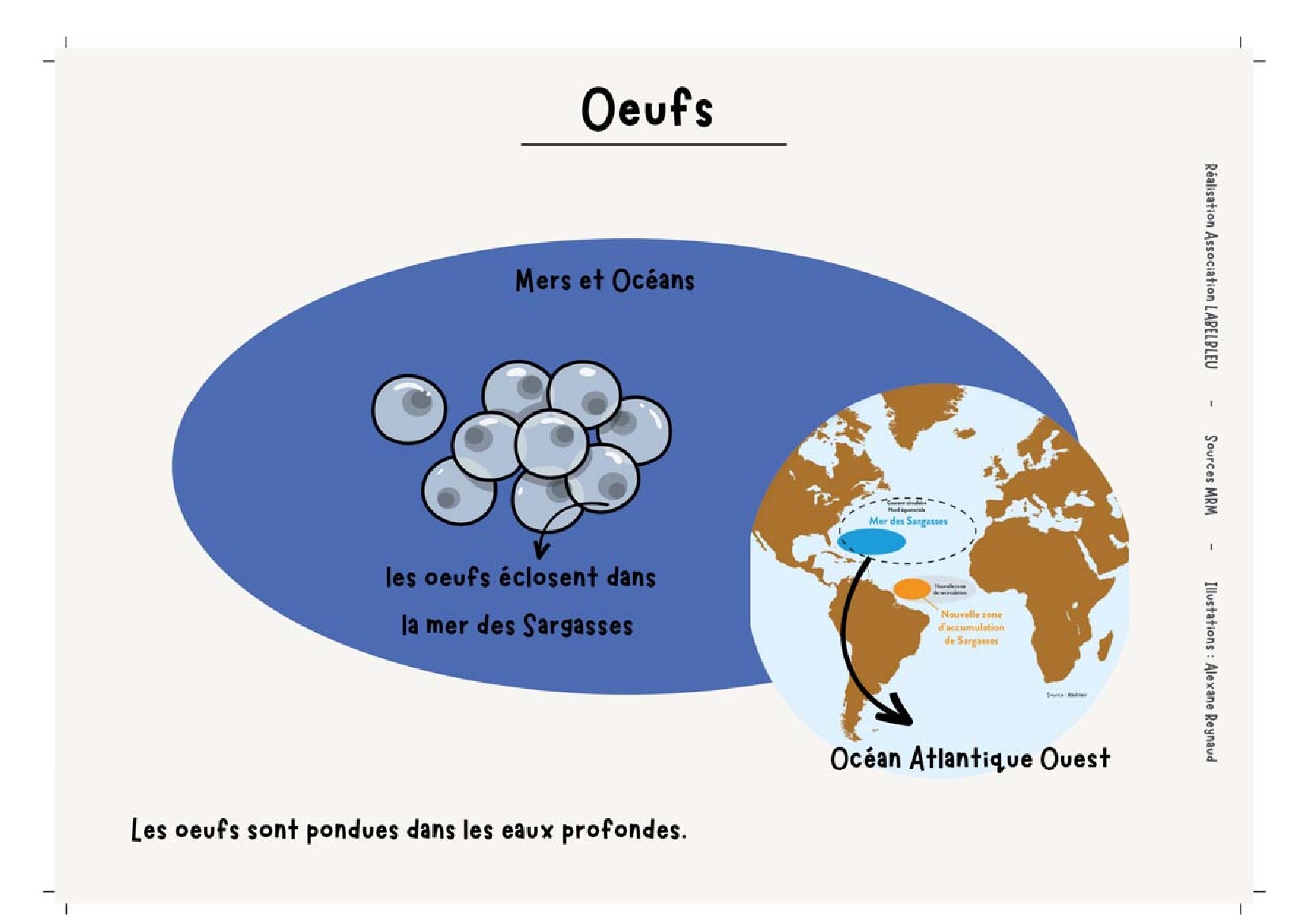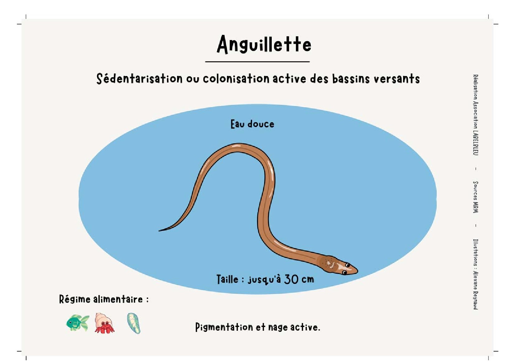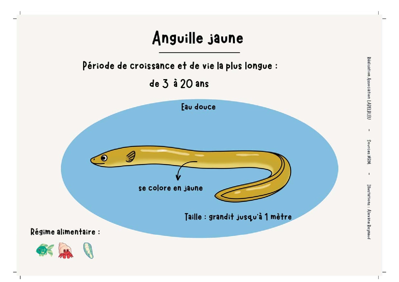 Ces dessins ont servi à faire une animation destinée au grand public pour apprendre le long et unique cycle de vie de l’anguille argentée !