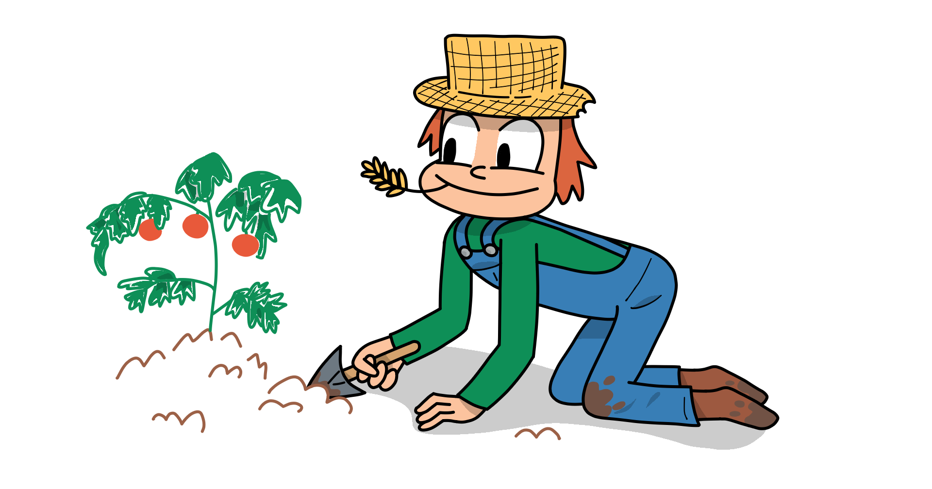 J’ai dû faire une abeille, une coccinelle, un escargot, une goutte d’eau, un lombric et un jardinier, dans trois poses différentes de mon choix. Donc j’ai imaginé des poses adaptées à chaque personnage. Je précise que pour l’escargot on m’a demandé de le dessiner à partir d’une histoire, je ne pense pas que tous les escargots ont pour habitude de lire les étiquettes des légumes !