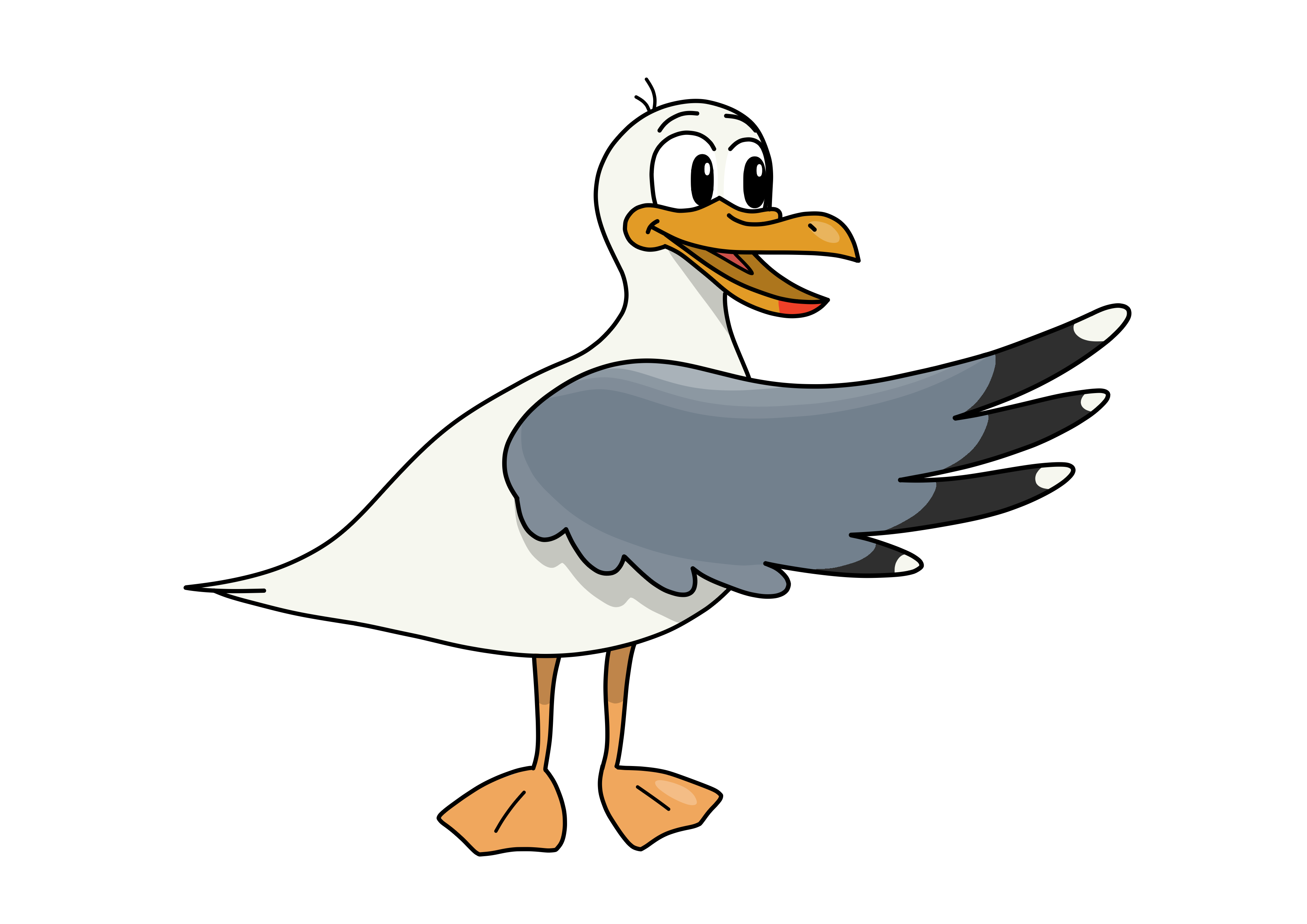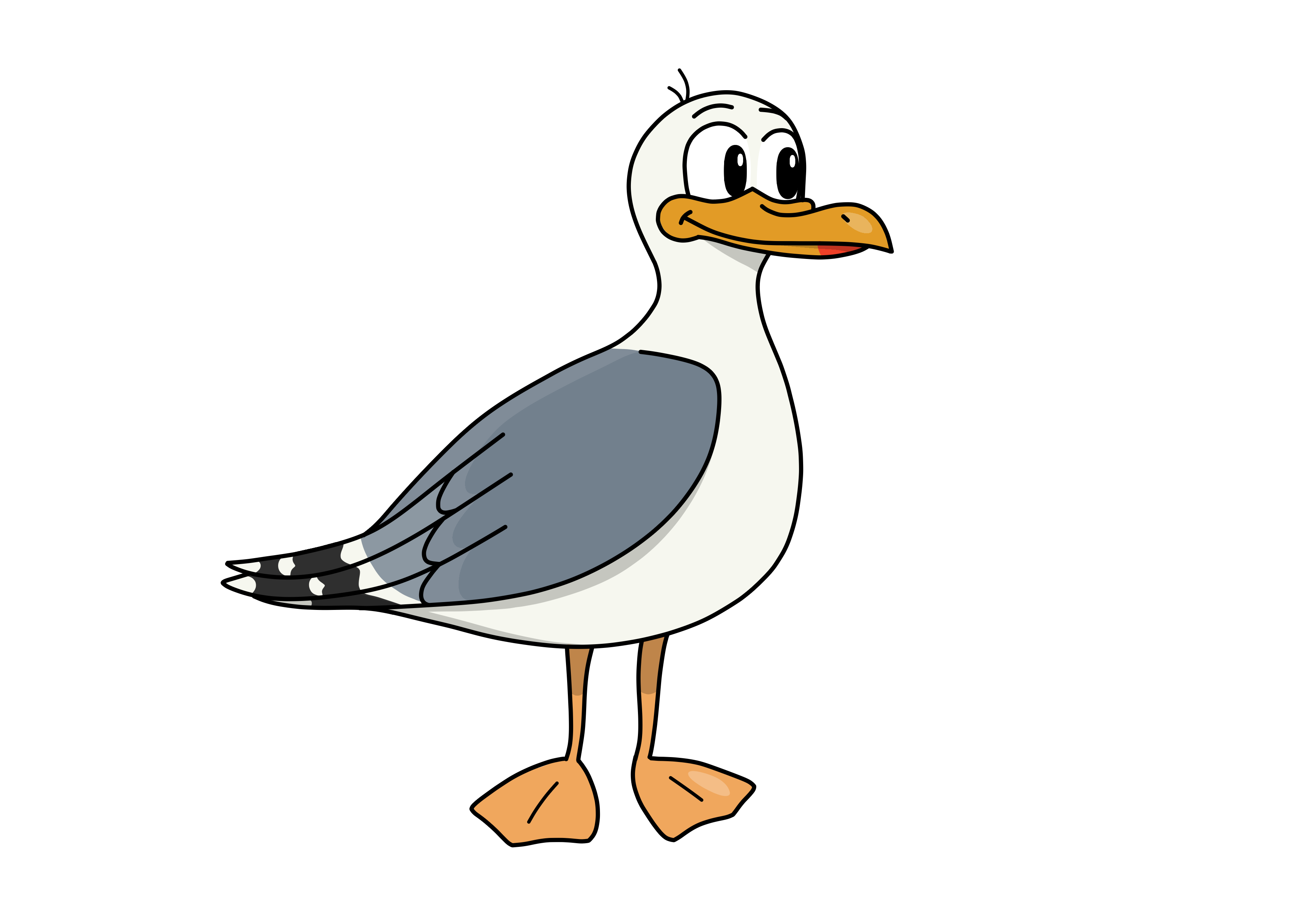 J’ai pris beaucoup de temps pour dessiner ce goéland car je voulais qu’il soit à la fois enfantin et coloré, tout en respectant au mieux les proportions et l’apparence d’un vrai goéland pour que les enfants apprennent les détails les plus importants de cet oiseau, pour ensuite peut-être, le reconnaître une fois à la plage !
